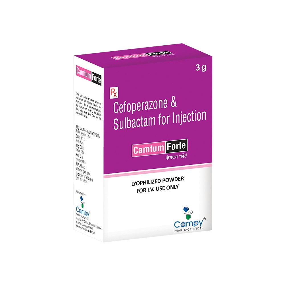 Camtum Forte is a broad-spectrum antibiotic injection used for treating severe bacterial infections like respiratory, urinary, abdominal, and skin infections. The combination enhances effectiveness against resistant bacteria.
